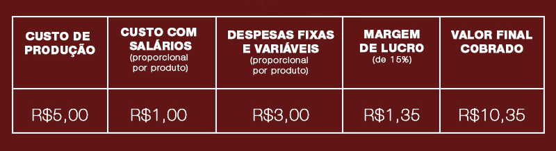 Caso seu empreendimento ofereça serviço ao invés da venda de apenas um produto, os custos com a produção e a mão de obra não deve ser considerado na tabela. Como você já deve ter observado, não dá para definir preço apenas com base em senso comum e achismos. Tudo precisa ser minimamente contabilizado a partir de critérios justos e claros.